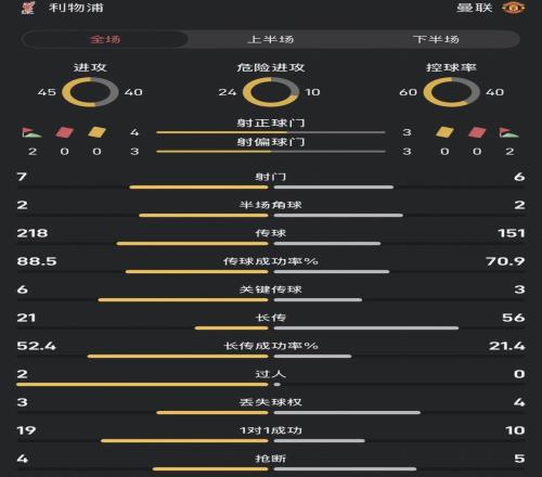 双红会半场数据对比:双方射门接近,利物浦场面略占优_24直播网