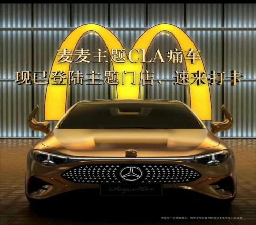 王楚钦在今年同时官宣代言了麦当劳与梅赛德斯-奔驰,品牌方敏锐捕捉到这一双重身份的连接点,大胆进行跨界联动。在北京等六大城市打造“安格斯 x 奔驰联名星级旗舰店”,推出带汉堡元素的“痛车”,甚至让消费者“坐进奔驰车里品尝汉堡”。王楚钦健康拼搏的正面形象成为连接两大品牌的纽带。一句“‘钦’爱的,一起‘麦’步奔驰!”瞬间拉满圈层好感,放大合作声量,巩固了其优质代言人地位。