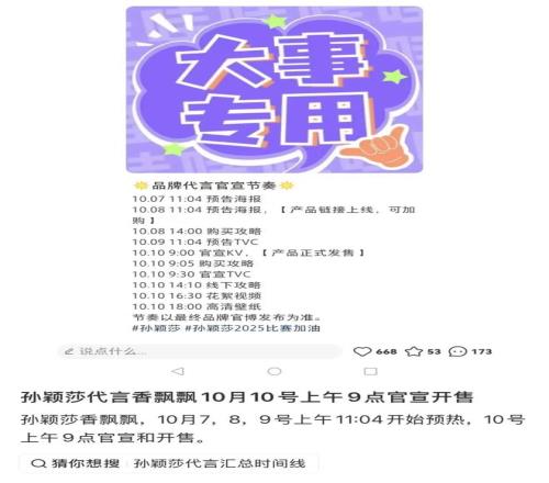 除此以外,粉丝深谙其带货数据对后续合作的重要性,会自发在小红书、微博等社交平台上精准跟进代言官宣节奏、带货类目等所有环节,确保单次数据亮眼,为偶像争取更多商业机会。