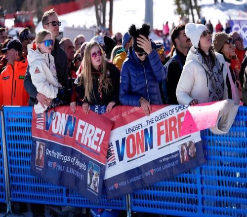 大批观众来到现场,希望见证林赛·沃恩的滑行。