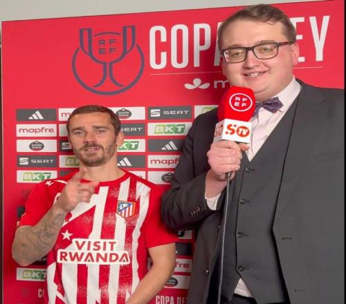 西班牙国王杯半决赛首回合,马竞主场4-0战胜巴萨,本场比赛打入1粒进球的格列兹曼赛后接受了SportyTV的采访。