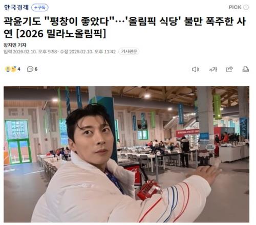 米兰冬奥会伙食也被韩国人吐槽了?本月9日,韩国短道速滑解说员、前国家队成员郭润起通过个人YouTube频道上传了...