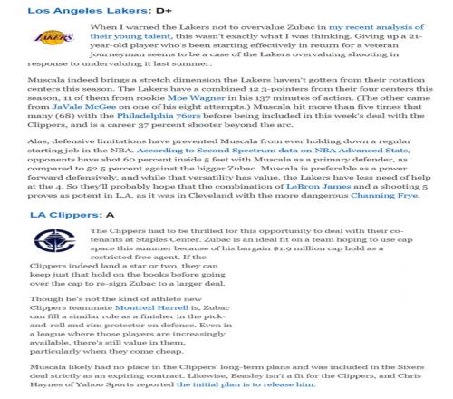 翻开当时ESPN对这笔交易的评价,湖人只有D+,快船则得到了A,也能说明这笔交易有多么得让人意外。