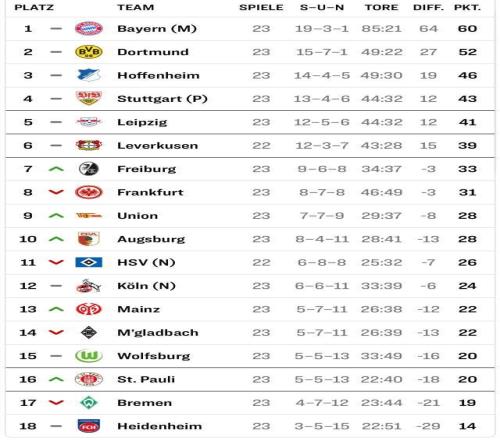 不来梅本轮做客1比2输给圣保利,两队在积分榜上互换位置,不来梅自本赛季第1轮后首次陷入直降区,绿白军团连续13轮不胜,创造了球队单赛季之内的最长不胜纪录。在重压之下,本赛季整体表现不错的德国U21国门巴克豪斯也出现了失误,球队自身进攻仍是雷声大雨点小,在混战中依靠替补前锋米洛舍维奇打入一球。