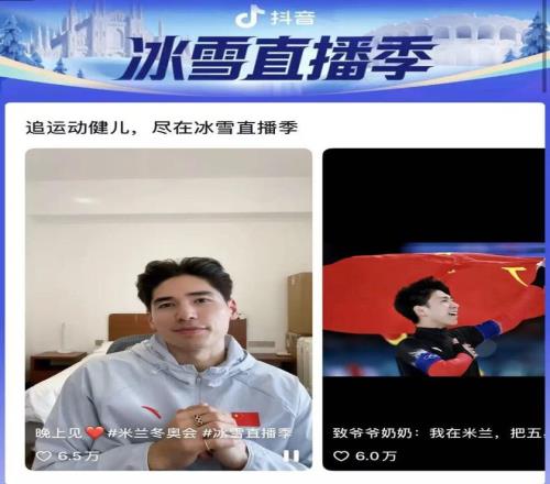 一方面,平台打造“上抖音,为冰雪健儿助威”词条,独立“冬奥榜”热搜专栏供观众查询议程,强化冬奥氛围;另一方面,抖音立足自身优势,先后展开“冰雪直播季”大咖陪看活动、“一起聊冰雪”话题讨论活动等等,集结“冬奥选手在抖音”账号群,以选手个人IP打开差异化米兰冬奥新视角。