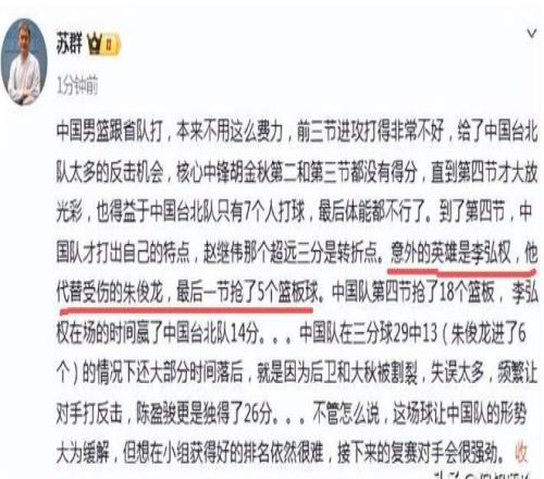 不是朱俊龙,不是胡金秋!名嘴苏群赞中国队一人是逆转英雄_24直播网