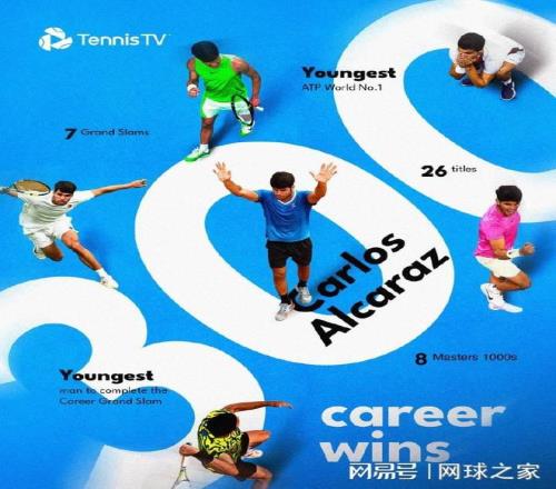 职业生涯打了367场比赛,获得300场胜利,阿尔卡拉斯追平麦肯罗最快实现300胜纪录,并列公开赛年代第三位。22岁的西班牙人,再一次把自己写进了最年轻纪录的史册。