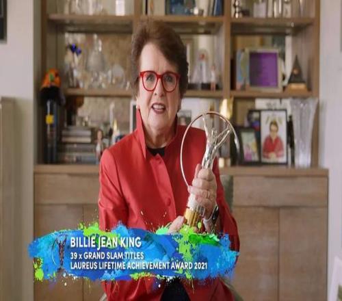 整个颁奖典礼最令人感动的时刻,是比利·简·金获得“终身成就奖”。在整整21年的时间里,劳伦斯一共颁发出16次“终身成就奖”,这是该奖项首次归属于网球项目。