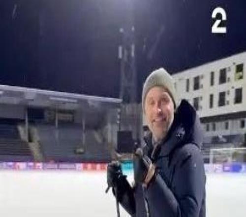 这雪有点大,欧冠赛前一名挪威记者在博德闪耀的球场边线处滑雪