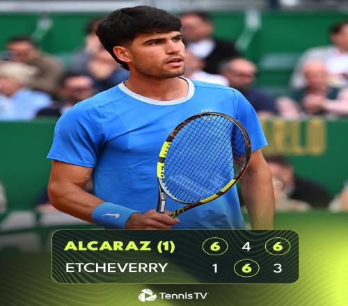 在蒙特卡洛大师赛八分之一决赛三盘击败埃切韦里成功闯入八强后,西班牙网球名将阿尔卡拉斯出席了赛后新闻发布...